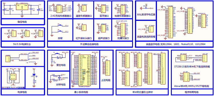 11、預(yù)留LCD1602/12864/Nokia5110和彩色液晶接口;