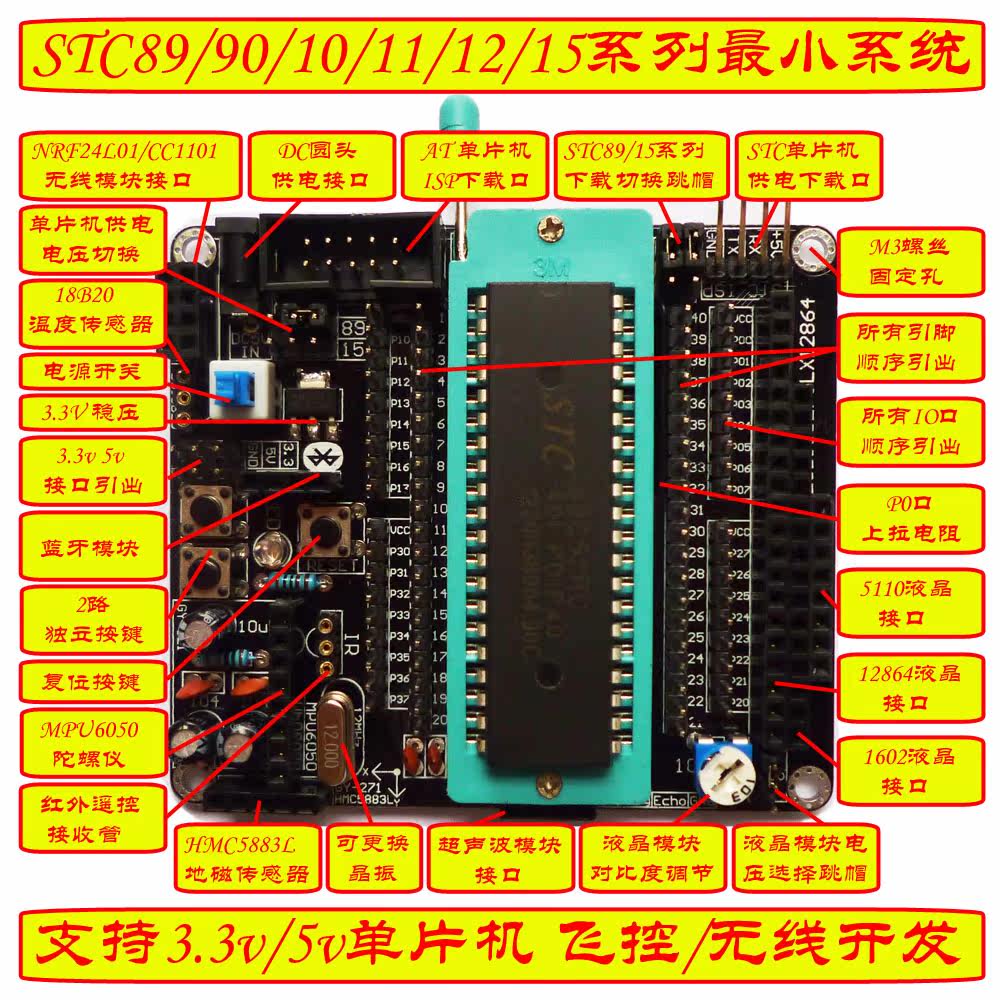 51單片機(jī)非常小系統(tǒng)開發(fā)板 飛控 無線 智能小車 藍(lán)牙 支持STC15系列