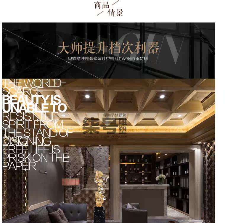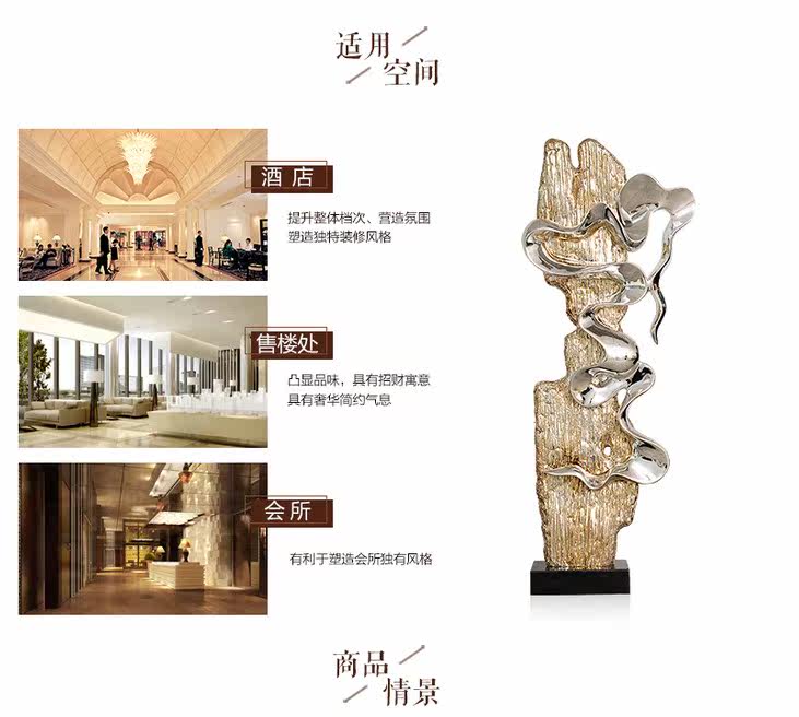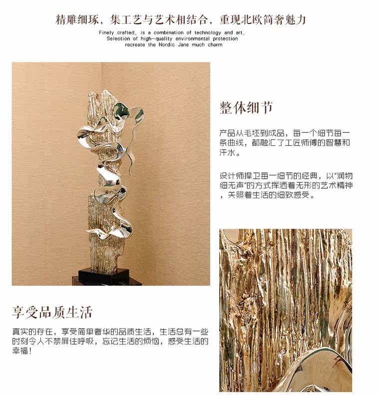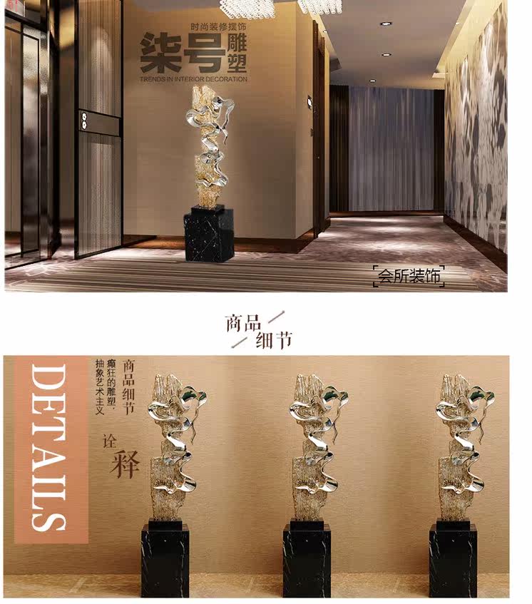 現(xiàn)代大型抽象電鍍擺件酒店大堂雕塑藝術(shù)品過道書房客廳落地裝飾品推廣熱賣行情