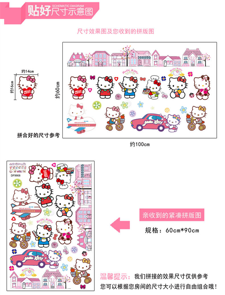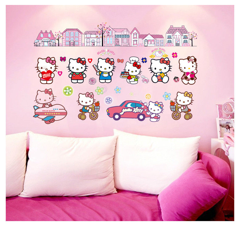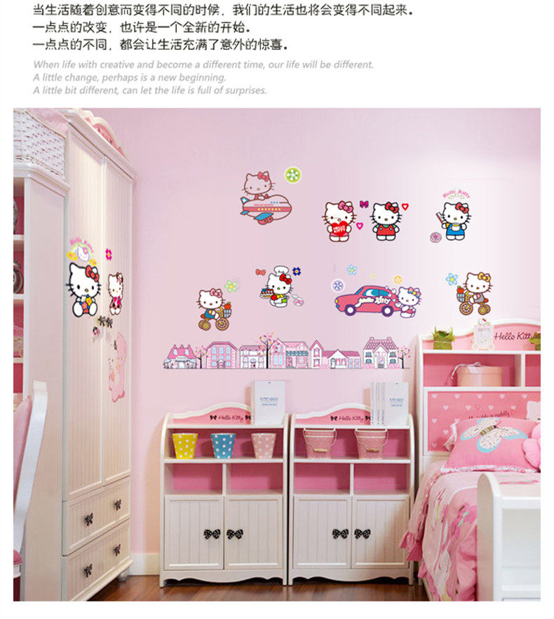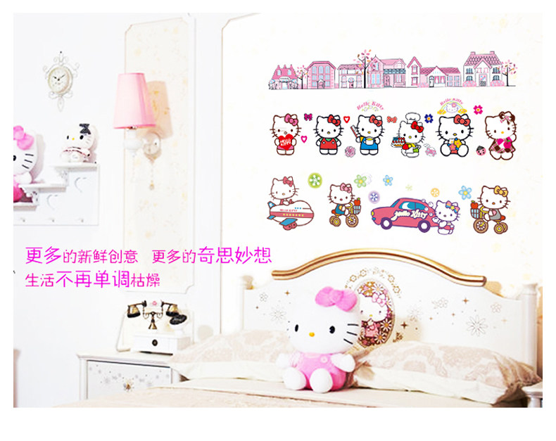 可愛(ài)KT貓墻貼女孩寢室臥室溫馨兒童房間裝飾品貼畫(huà)柜子衣柜門(mén)貼紙推廣熱賣(mài)行情