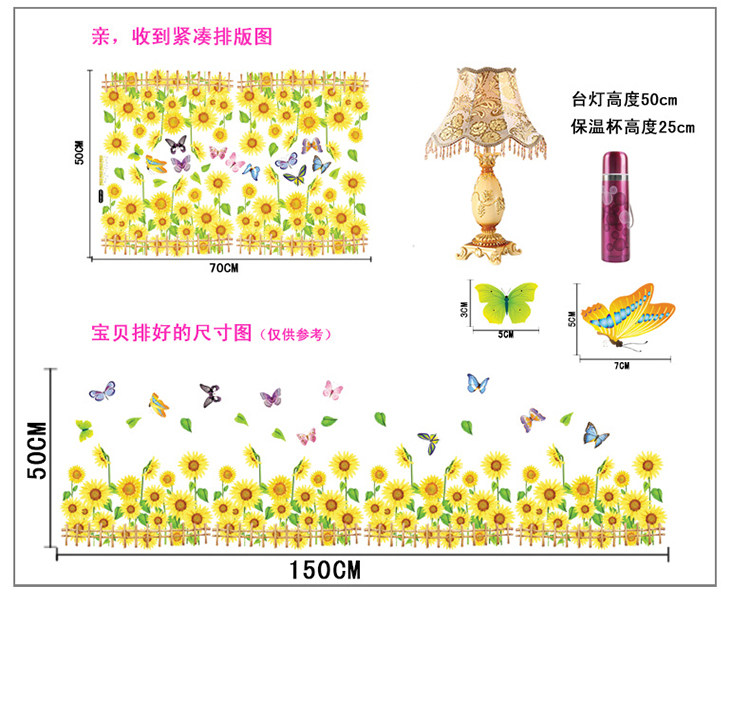 - 顏色分類:5朵向日葵向日葵踢腳線,一套貼1.5米