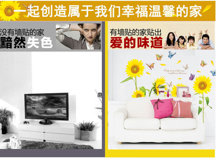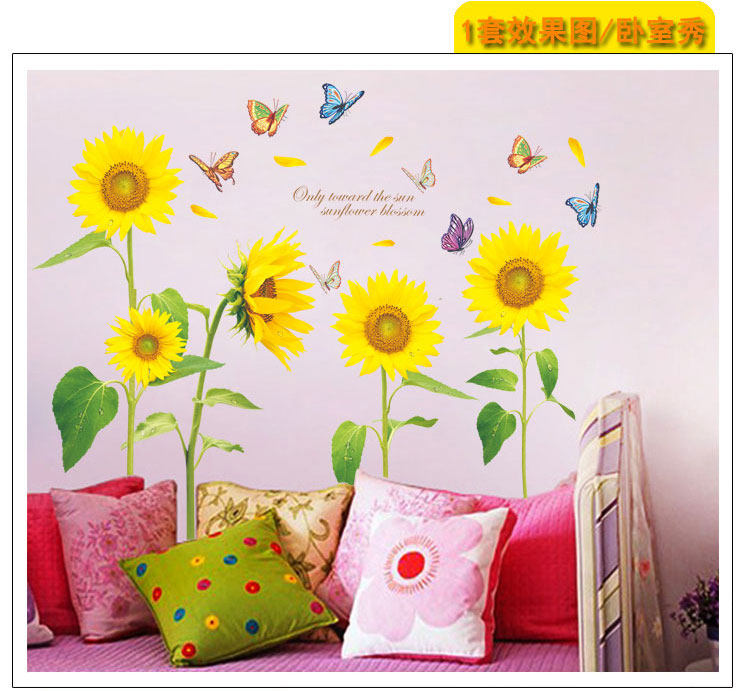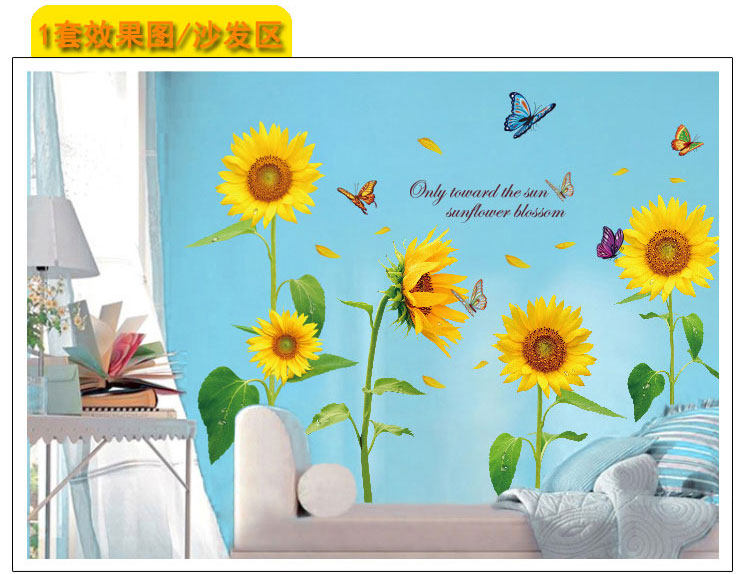 向日葵田園風(fēng)墻貼臥室溫馨客廳電視沙發(fā)背景墻壁貼畫墻貼紙可移除價(jià)格行情