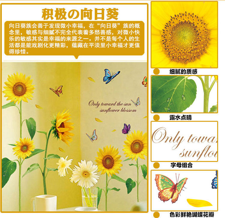向日葵田園風(fēng)墻貼臥室溫馨客廳電視沙發(fā)背景墻壁貼畫墻貼紙可移除推廣熱賣行情