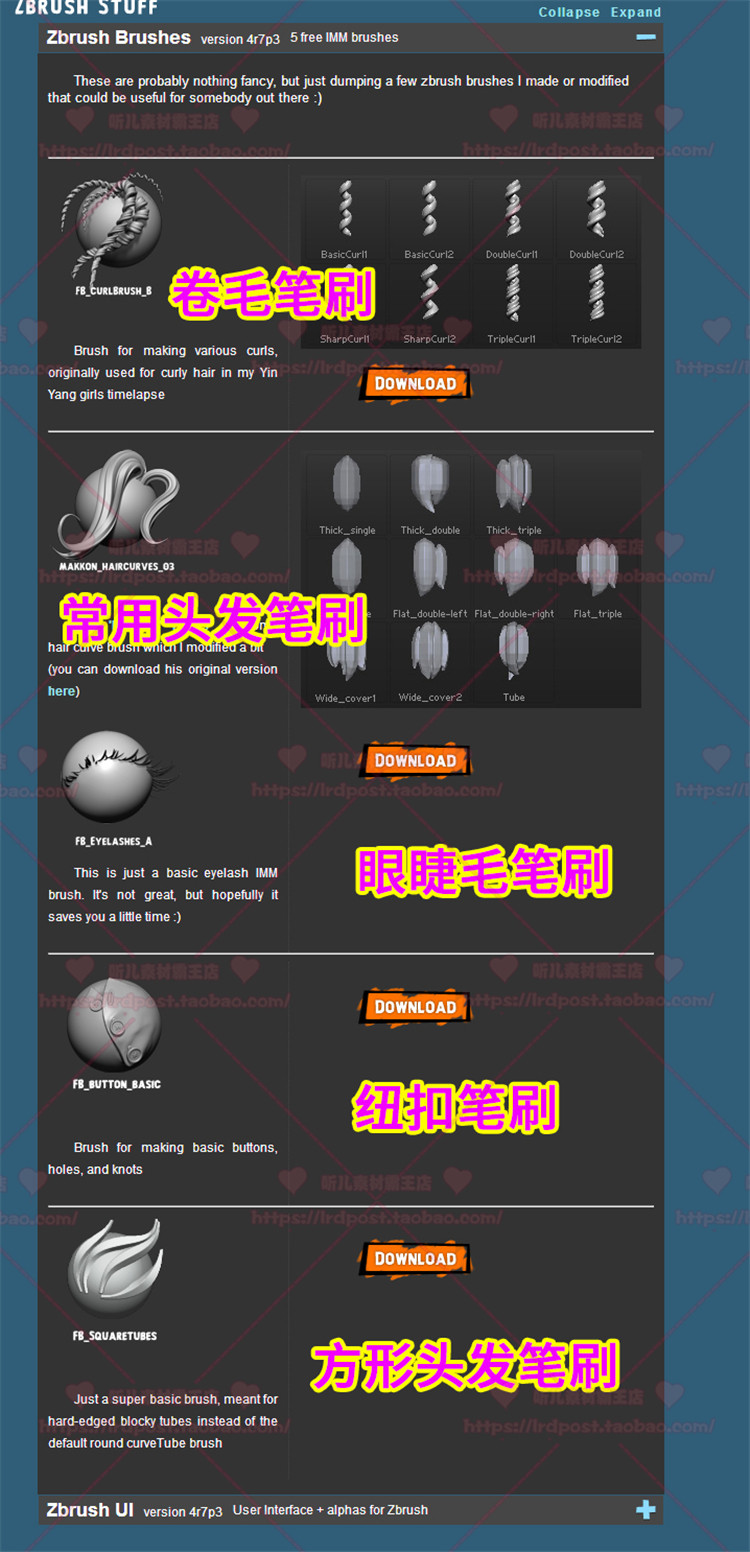 zbrush頭發(fā)眼睫毛波浪卷發(fā)紐扣筆刷 zb雕刻 人物頭發(fā)筆刷加送視頻推廣熱賣行情