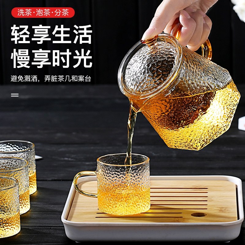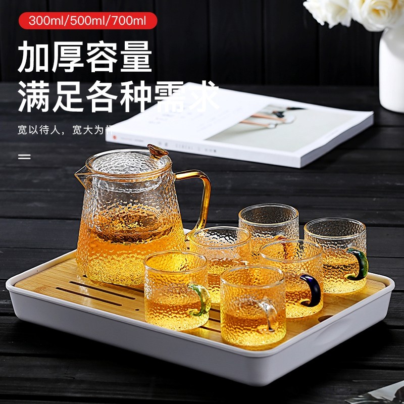玻璃茶壺過(guò)濾泡茶壺家用耐高溫加厚錘紋花茶電陶爐煮茶器茶具套裝