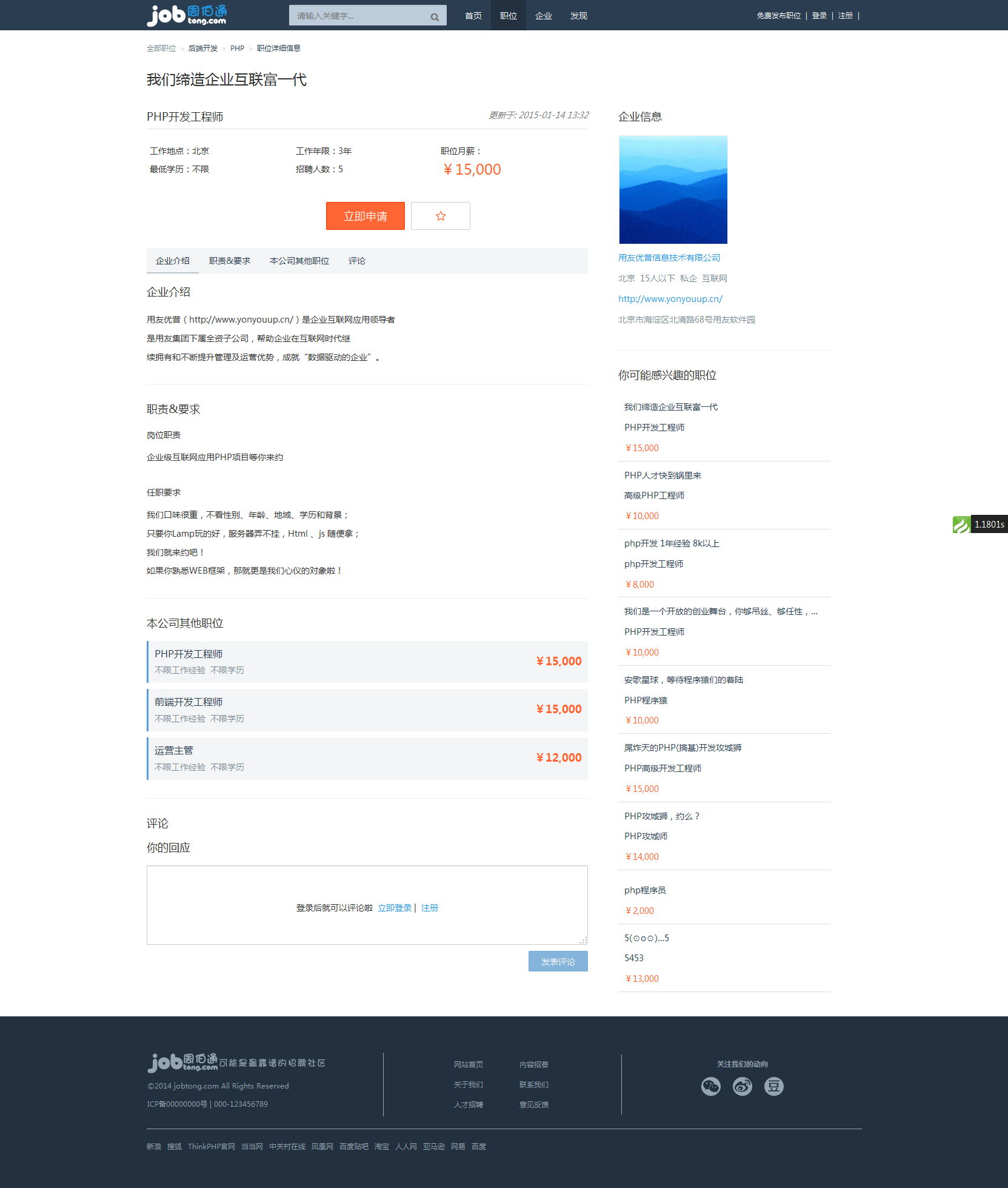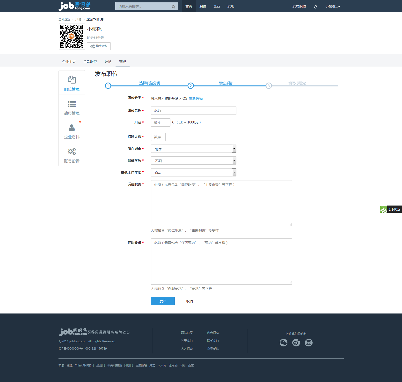 thinkphp3.2核心仿周伯通jobtong人才招聘網(wǎng)站系統(tǒng)源碼(修復(fù)版)推廣熱賣行情