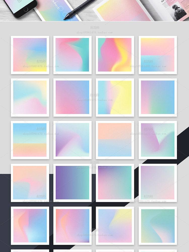 文件包含:16個(gè)PSD + 鐳射漸變AI背景