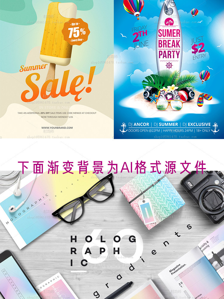 2017新宣傳海報(bào)漸變創(chuàng)意時(shí)尚春夏PSD設(shè)計(jì)素材模板AI熒光鐳射背景推廣熱賣行情