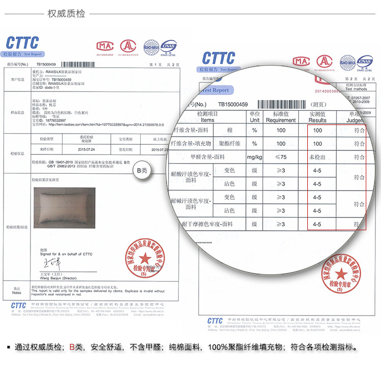 枕芯采用棉花的本身——米色,面料無(wú)漂白,無(wú)甲醛,無(wú)致癌芳香胺;