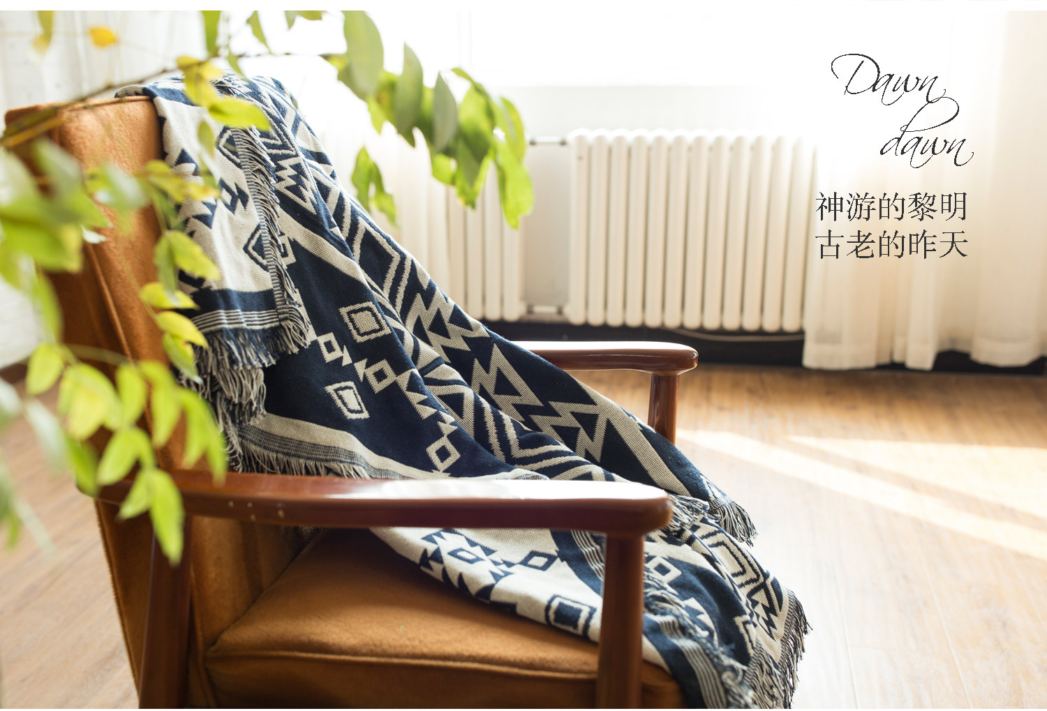 從四邊的流蘇可見其費(fèi)時(shí)的痕跡,線毯不大不小,做什么都富富有余。