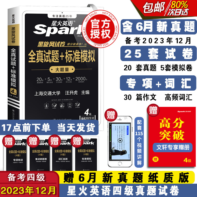 【含6月紙質(zhì)真題】備考2023.12星火英語(yǔ)四級(jí)考試英語(yǔ)真題資料六級(jí)大學(xué)英語(yǔ)詞匯書(shū)單詞聽(tīng)力閱讀寫(xiě)作翻譯四六級(jí)專(zhuān)項(xiàng)訓(xùn)練cet4歷年試卷推廣熱賣(mài)行情