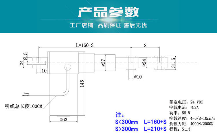 電動推桿12V 24V直流電機馬達10mm1500mm大型升降器開窗器伸縮桿價格行情