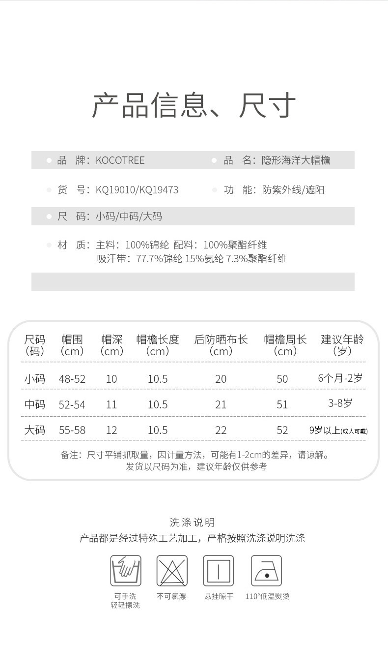 - 適用年齡:【海邊遮陽防曬帽】尺碼按寶寶實(shí)際頭圍選取哦