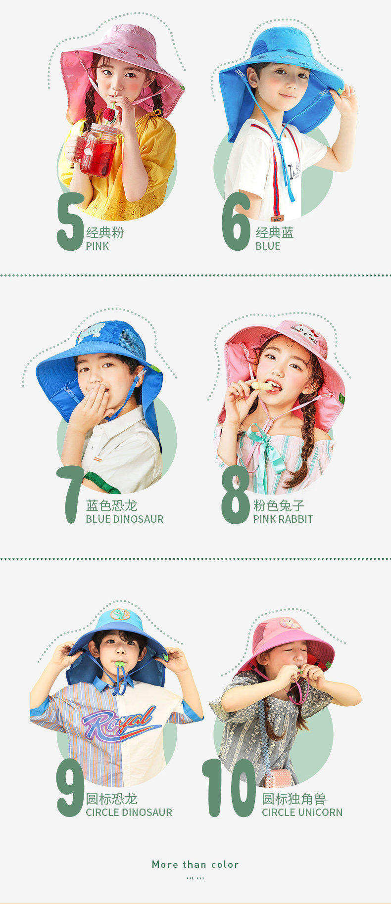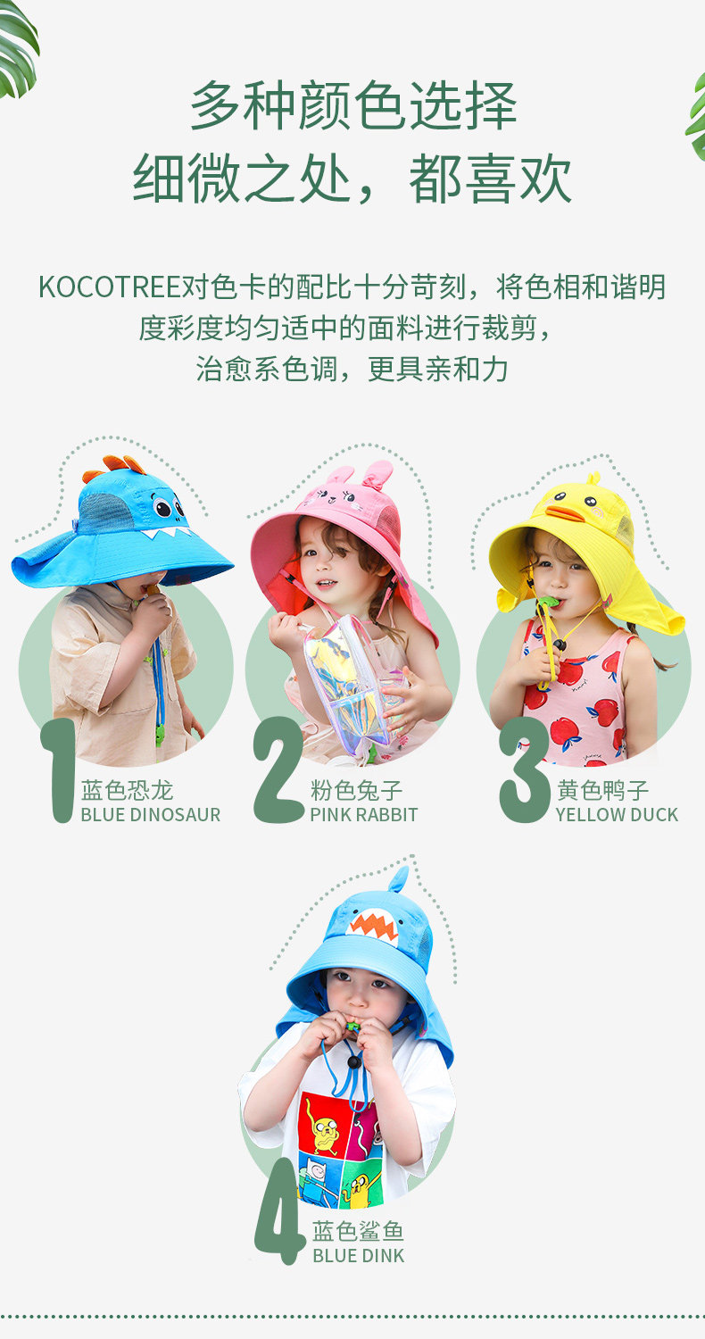 - 顏色分類:A款大帽檐:活力藍(lán)恐龍A款大帽檐:俏麗粉小兔B款大帽檐:海爾藍(lán)恐龍B款大帽檐:夏洛黃鴨子B款大帽檐:黛西藍(lán)鯊魚B款大帽檐:安娜粉小兔C款大帽檐:海洋藍(lán)恐龍C款大帽檐:夢幻獨(dú)角獸D款大帽檐:深海藍(lán)D款大帽檐:海星粉D款大帽檐:珊瑚紅