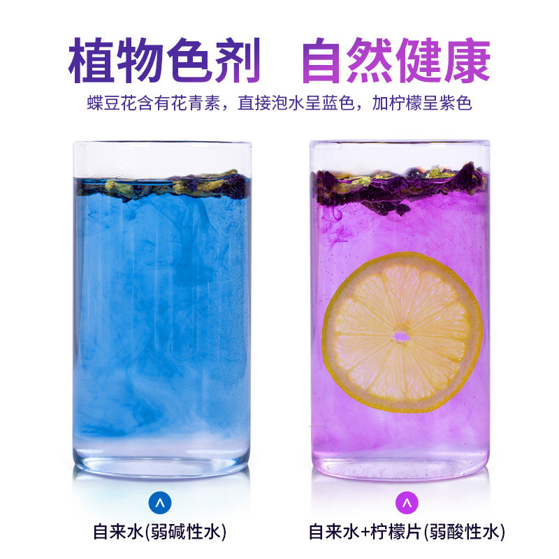 蝶豆花干花泰國(guó)藍(lán)蝴蝶烘焙食用奶茶店彩色冰粉白涼粉花茶專用材料