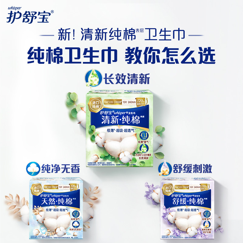 護(hù)舒寶純棉衛(wèi)生巾清新型日用組合裝240mm30片推廣熱賣(mài)行情