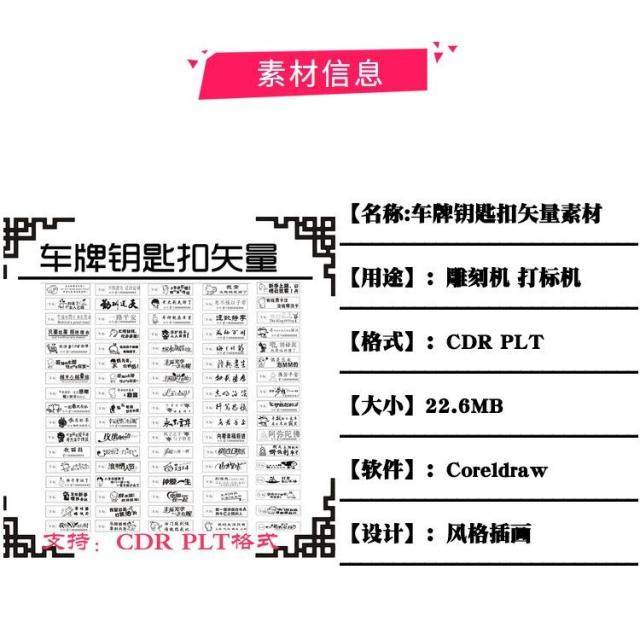 激光雕刻打標(biāo)機(jī)老人幼兒童防丟防走失金屬牌刻字模板矢量圖案素材 | 熱銷 | : 25.8 | | 激光雕刻打標(biāo)機(jī)家庭親情矢量軍牌鑰匙扣木牌掛件刻字圖案素材模板 | 熱銷 | : 29.9 | | 激光雕刻打標(biāo)機(jī)姐妹閨蜜矢量刻字圖案鑰匙扣項(xiàng)鏈T恤素材模板 | 熱銷 | : 29.9 | | 激光雕刻打標(biāo)機(jī)46平安木牌汽車掛件鑰匙扣軍牌矢量圖刻字模板素材 | 熱銷 | : 29.9 | |