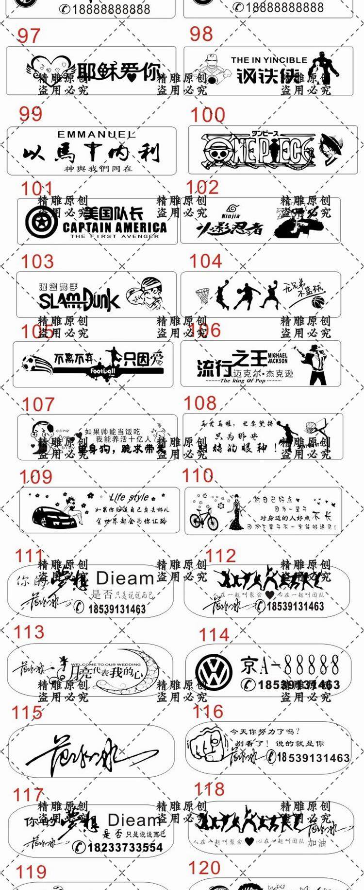 激光雕刻打標(biāo)機(jī)打火機(jī)汽車掛件鑰匙扣刻字圖案模板矢量圖素材文件 | 熱銷 | : 15.8 | | 激光雕刻打標(biāo)機(jī)汽車標(biāo)大全矢量刻字圖案汽車標(biāo)志集合模板素材文件 | 熱銷 | : 9.9 | | 激光雕刻機(jī)打標(biāo)機(jī)車標(biāo)大全集合總匯圖片案模板矢量圖素材設(shè)計(jì)文件 | 熱銷 | : 9.9 | | 激光雕刻打標(biāo)機(jī)軍牌打火機(jī)豎版木質(zhì)車牌鑰匙扣矢量圖文件刻字素材 | 熱銷 | : 25.8 | |