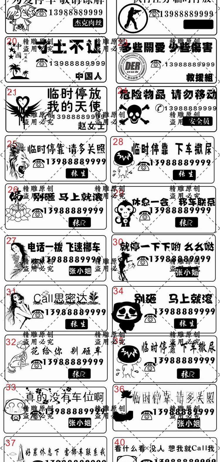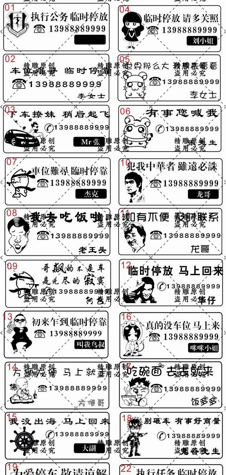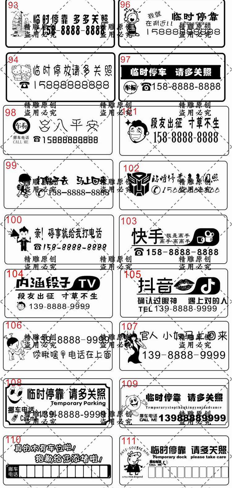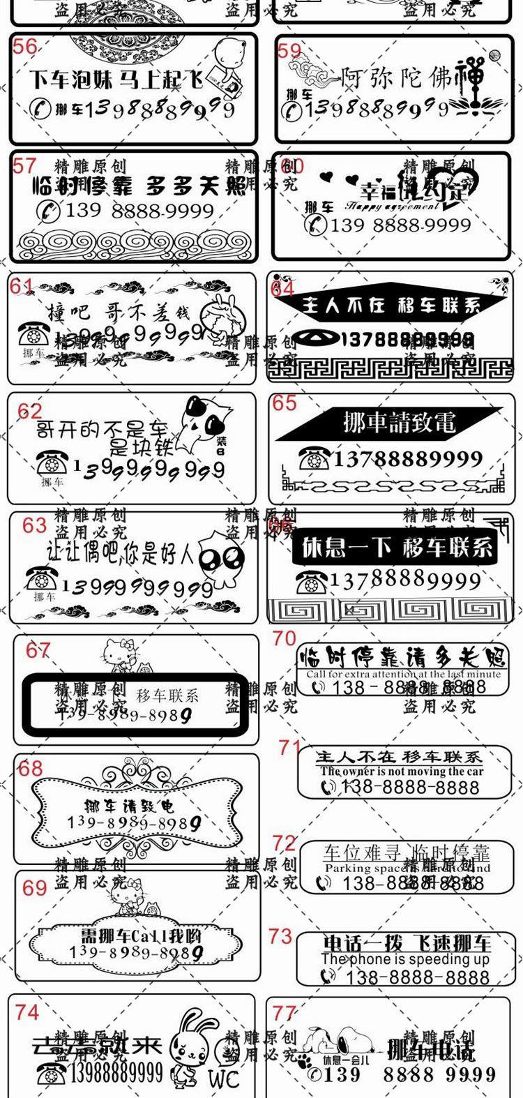 激光雕刻打標(biāo)機(jī)小車臨時(shí)停車移挪車牌圖案模板矢量圖素材設(shè)計(jì)文件價(jià)格行情