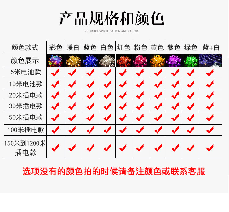 - 長度:5米50燈【電池款】10米80燈【電池款】10米80燈【電池款帶遙控】10米80燈【USB款帶遙控】20米200燈【插電款】20米200燈【插電款帶遙控】30米300燈【插電款】30米300燈【插電款帶遙控】50米500燈【插電款】50米500燈【插電款帶遙控】50米1000燈【插電款】50米1800燈【插電款】100米1000燈【插電款】100米1000燈【插電款帶遙控】100米2000燈【插電款】100米3600燈【插電款】150米1500燈【插電款】150米1500燈【插電款帶遙控】200米2000燈【插電款】200米2000燈【插電款帶遙控】300米3000燈【插電款】300米3000燈【插電款帶遙控】600米6000燈【插電款】600米6000燈【插電款帶遙控】