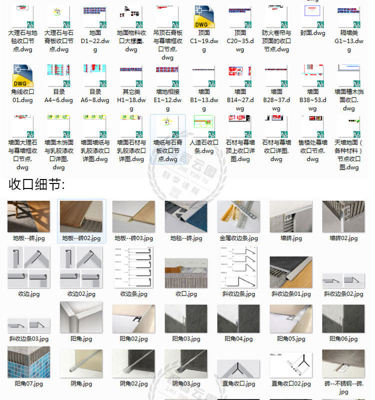 施工收口工藝大全CAD節(jié)點大樣圖紙規(guī)范教程素材 室內(nèi)裝修實景圖價格行情
