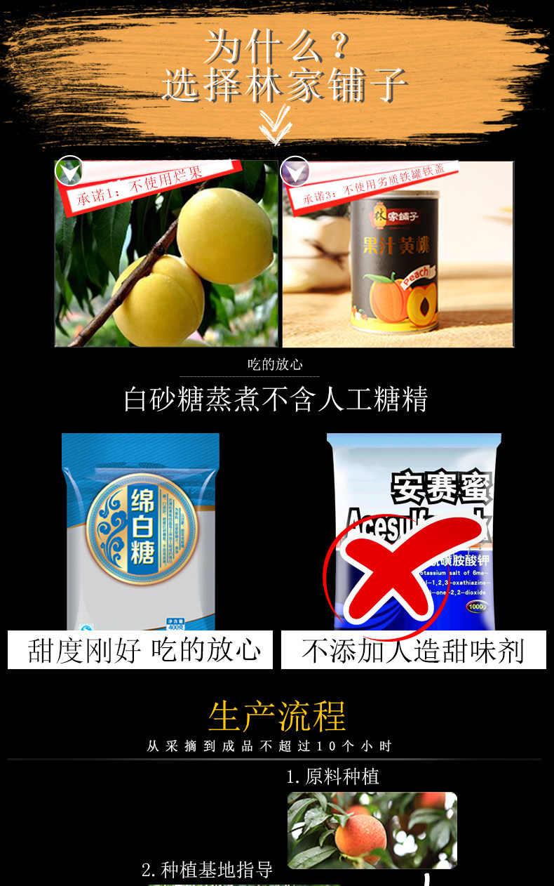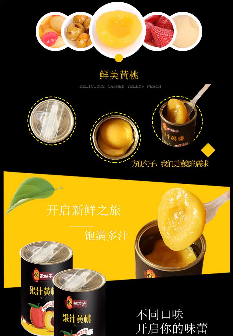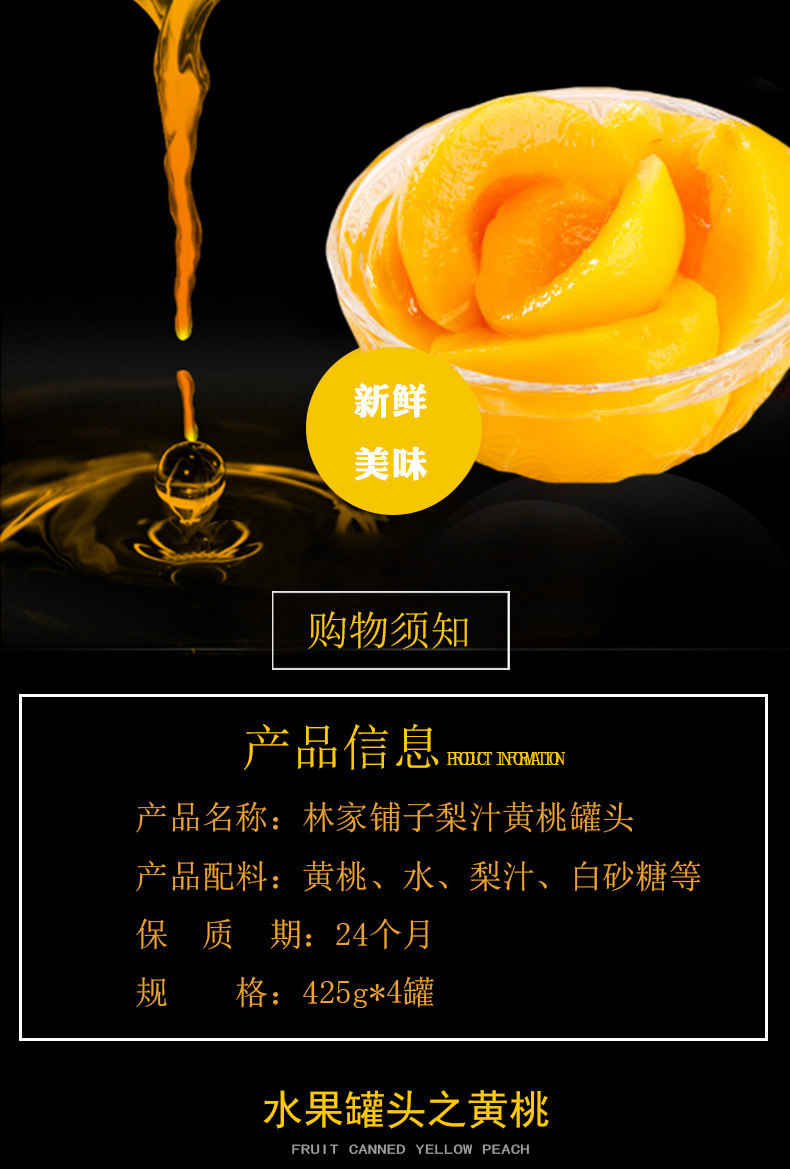 林家鋪子 新鮮優(yōu)質糖水黃桃對開罐頭425g6罐整箱包郵水果罐頭新品.推廣熱賣行情