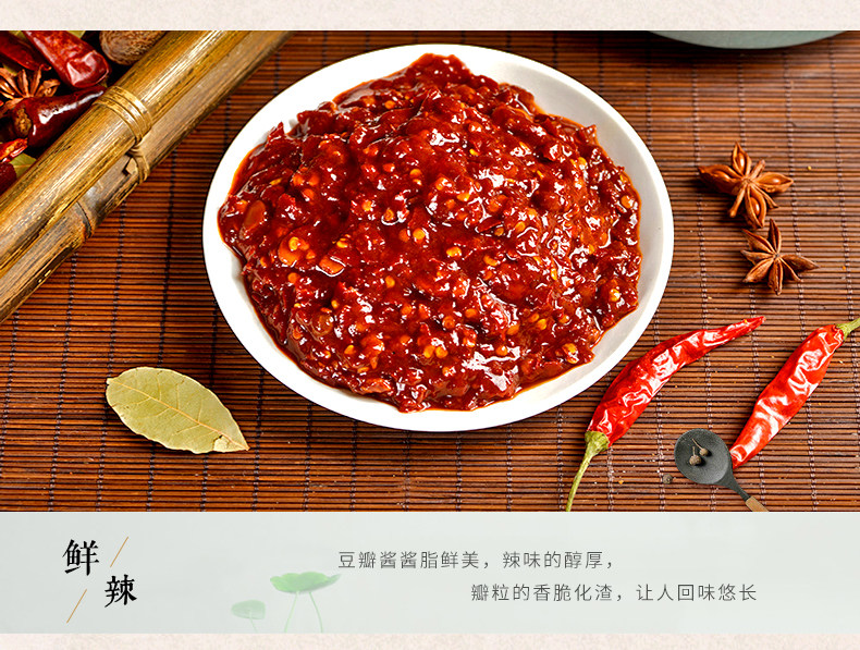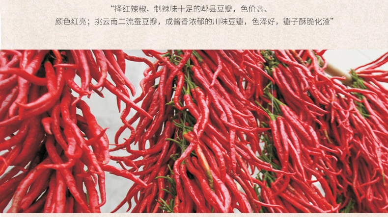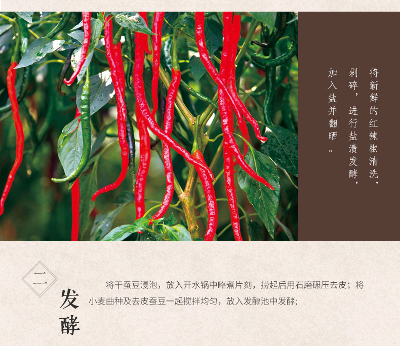 - 配料表:鮮紅辣椒、蠶豆仁、食用鹽、小麥粉、食用植物油