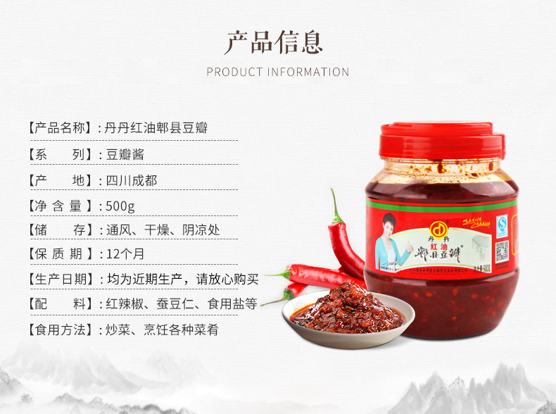 4瓶包郵 丹丹豆瓣500g 正宗四川特產(chǎn)郫縣豆瓣醬紅油豆瓣辣椒醬.推廣熱賣行情