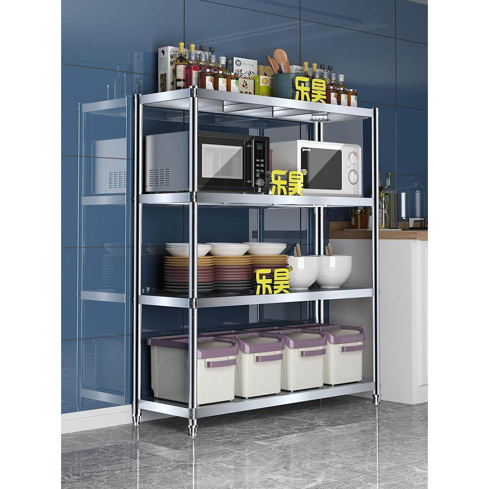 不銹鋼廚房置物架落地多層家用微波爐烤箱儲(chǔ)物架多功能四層貨架子