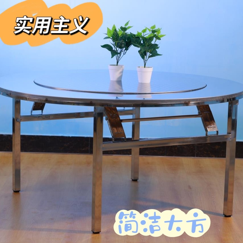 不銹鋼圓桌內(nèi)置轉(zhuǎn)盤加厚加固折疊收納方便搬運(yùn)簡(jiǎn)單現(xiàn)貨免安裝桌椅價(jià)格行情