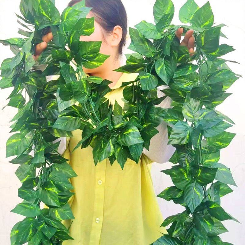 仿真葡萄葉藤條樹葉吊頂裝飾花藤綠植物假花藤蔓塑料管道纏繞綠葉推廣熱賣行情