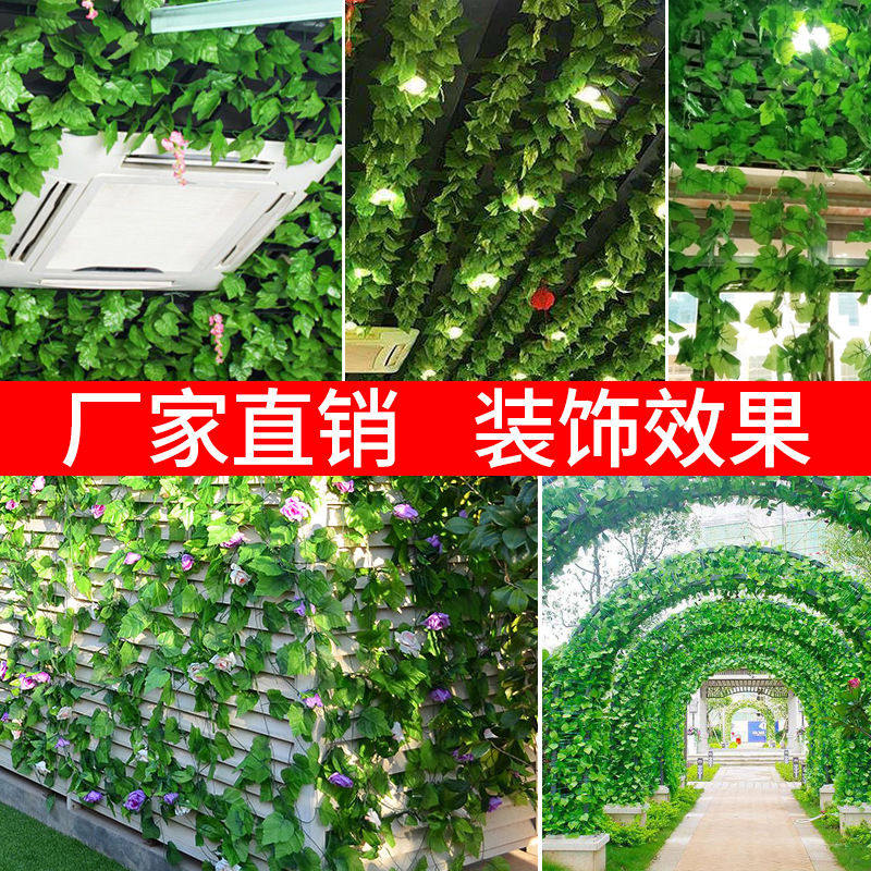 仿真葡萄葉藤條樹葉吊頂裝飾花藤綠植物假花藤蔓塑料管道纏繞綠葉