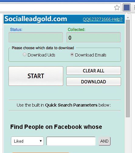 Social Lead Gold 豎外非常新的facebbok營銷工具,能在facebbok上按條件(愛好 語言 地區(qū) 主頁 組等)提取相關用戶的郵箱,方便你進行廣告營銷,功能和FB Lead Che軟件類似。此軟件目前非常大的特點是,告別facebook api 調用,能搜索 導出用戶郵箱,供你進行郵件營銷或者facebook上定向投放廣告。