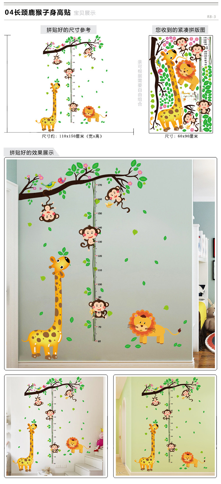 可移除量身高墻貼兒童房間卡通動(dòng)漫貼畫(huà)身高尺貼紙幼兒園墻面裝飾推廣熱賣(mài)行情