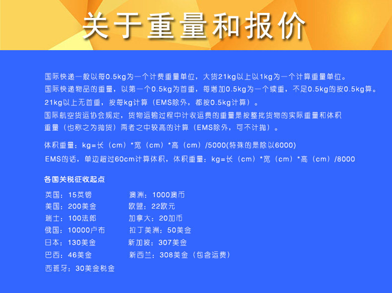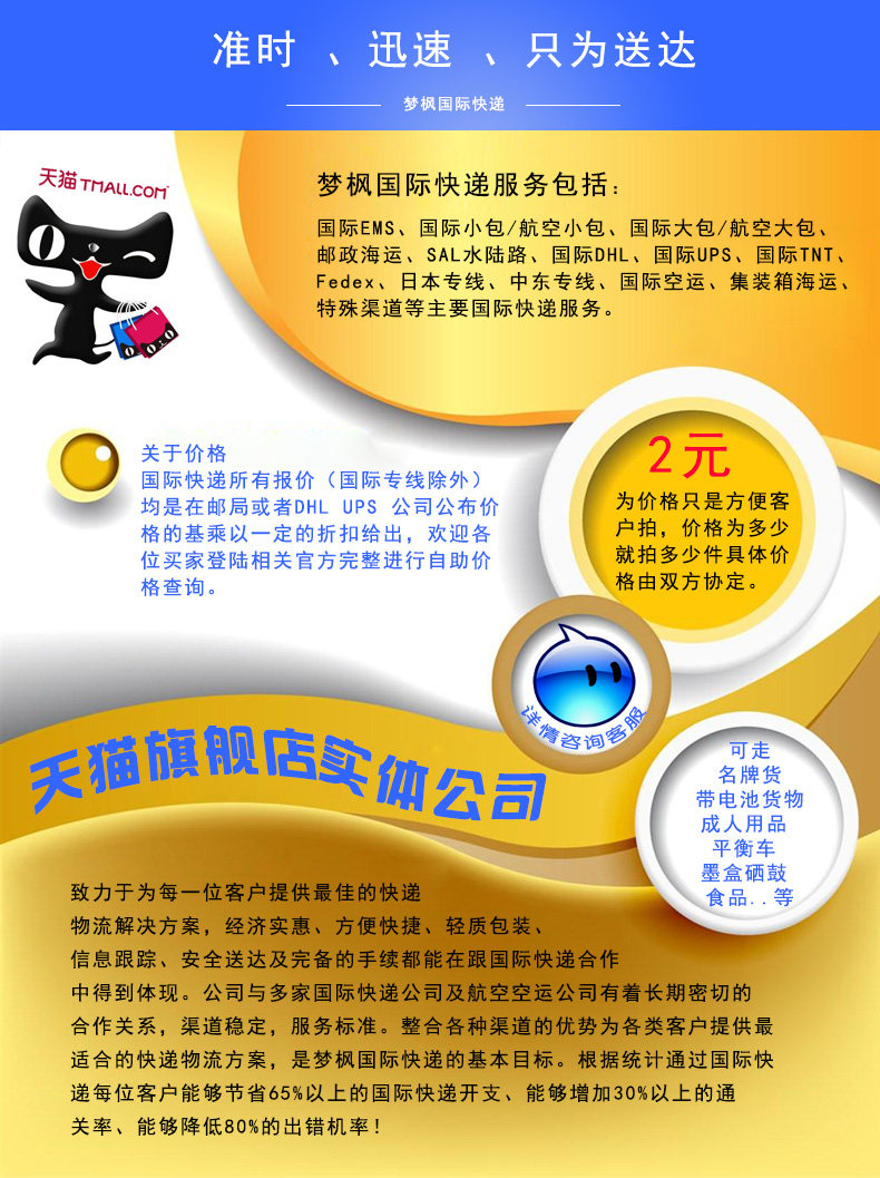 - 快遞類型:ems/小包裹0.5KG-20KG