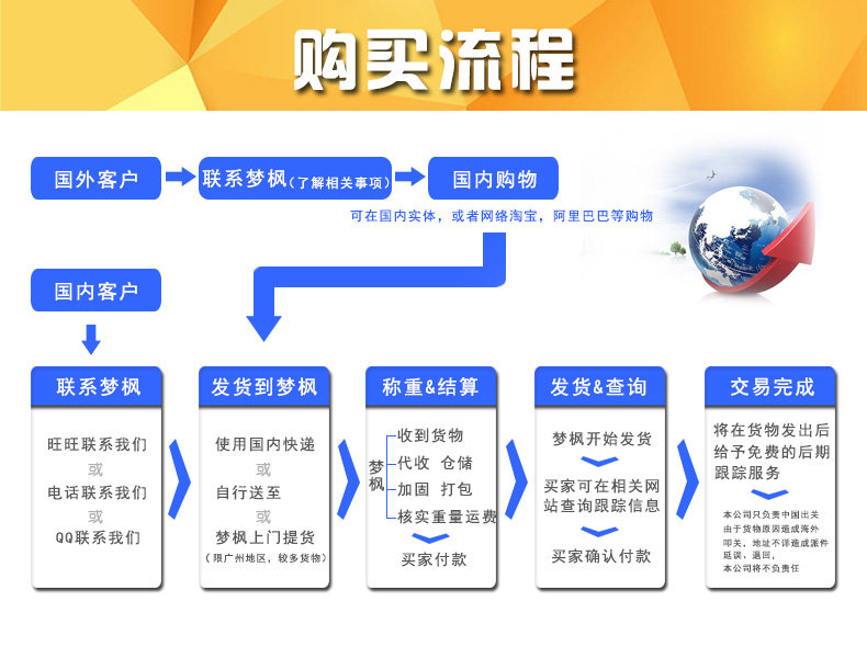 1.由于天氣原因,自然災害,戰(zhàn)爭,機械故障等不可抗力造成的貨物延誤,和目的地海關(guān)查貨以及目的地客人沒有進出口權(quán),或目的地客人拒絕簽收,或目的地客人支付海關(guān)關(guān)稅不及時等其他原因造成的貨件延誤,貨物無法清關(guān),貨物無法派送,貨物被退回,本店不承擔任何責任。碰到以上情況,發(fā)貨人仍需及時支付運輸費用給本店,并承擔由此引起的一切責任和費用。(非本店原因造成的問題,本店不承擔責任。)