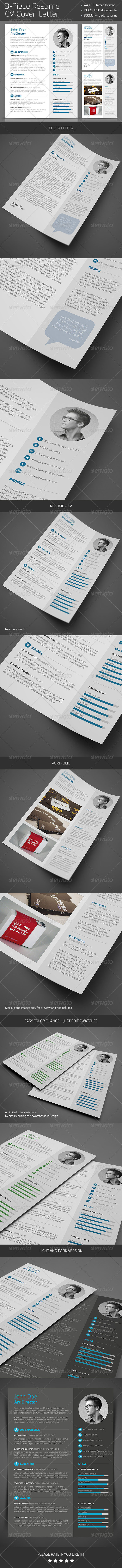3Piece Resume CV Cover Letter 簡(jiǎn)潔英文簡(jiǎn)歷設(shè)計(jì)素材簡(jiǎn)歷模板推廣熱賣行情
