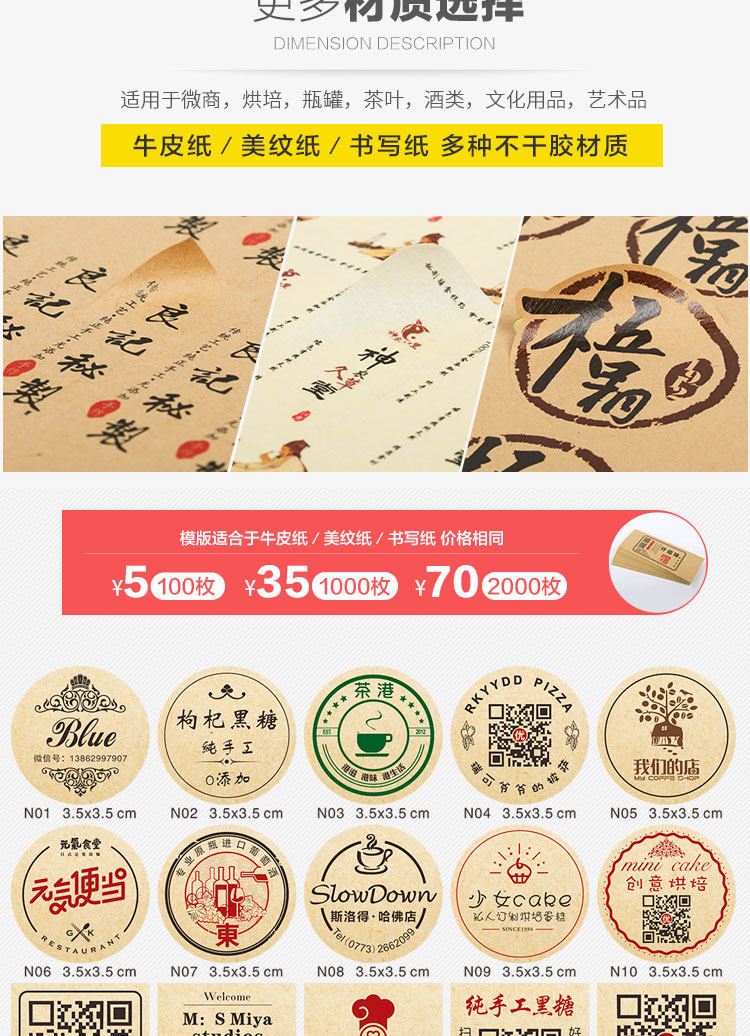 純手工制作牛皮紙不干膠烘焙蛋糕蜂蜜標(biāo)簽瓶貼紙定做封口貼不粘膠推廣熱賣行情