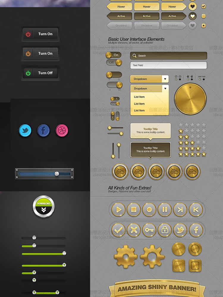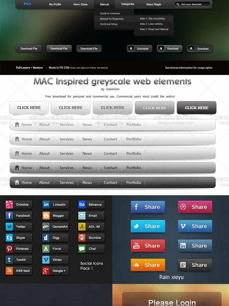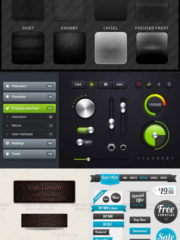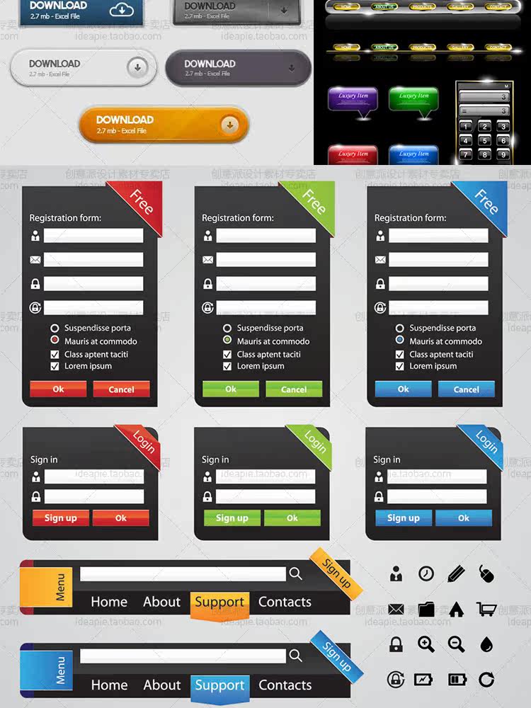 精選常用按鈕設(shè)計(jì)素材包網(wǎng)頁(yè)UI設(shè)計(jì)APP軟件按鈕圖標(biāo)PSD矢量源文件推廣熱賣行情