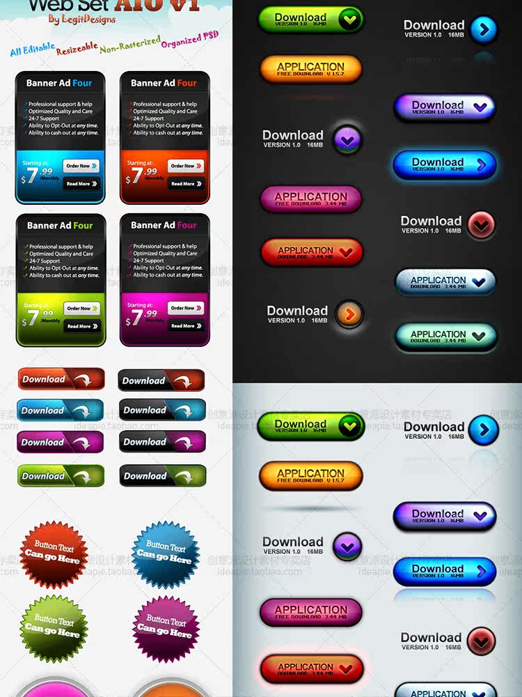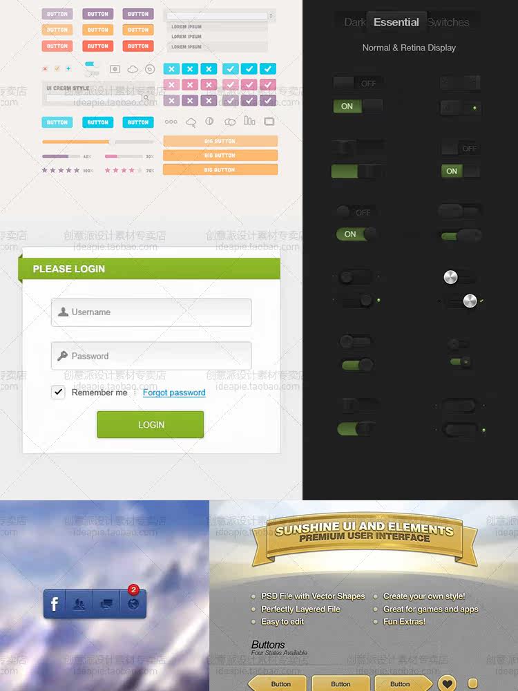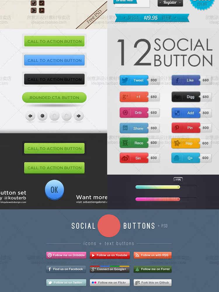 精選常用按鈕設(shè)計(jì)素材包網(wǎng)頁(yè)UI設(shè)計(jì)APP軟件按鈕圖標(biāo)PSD矢量源文件價(jià)格行情