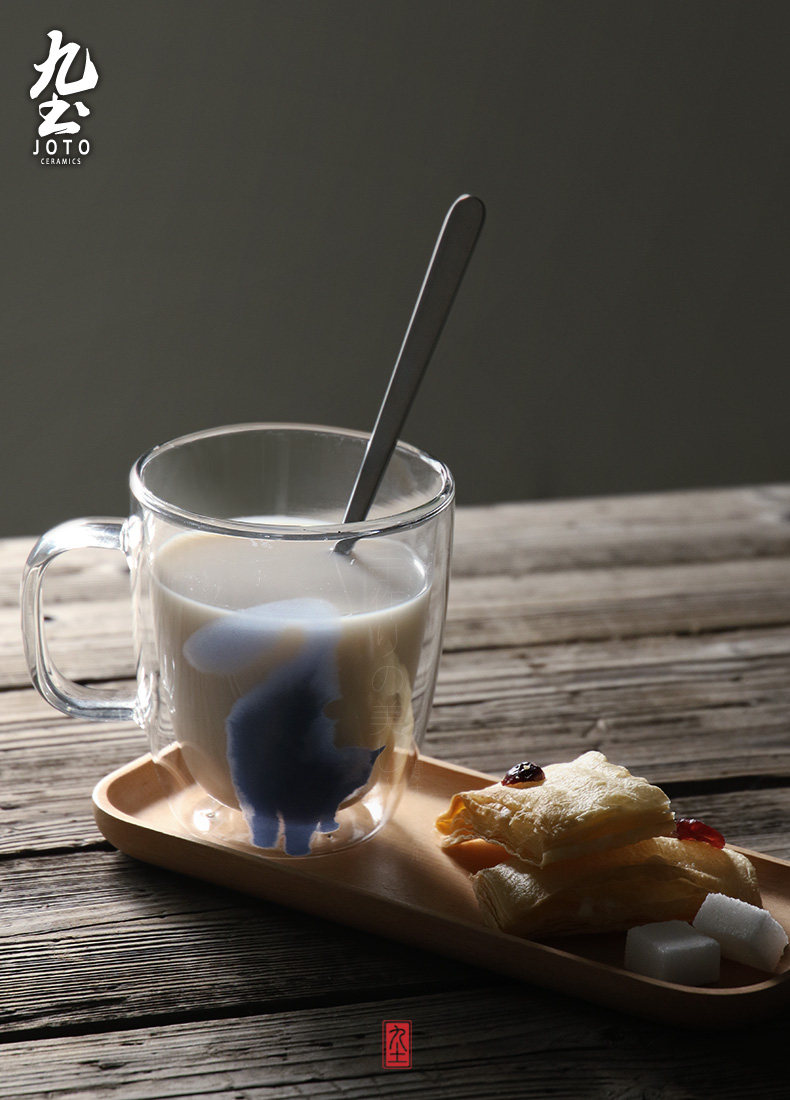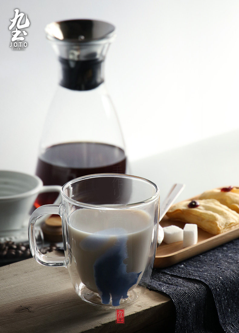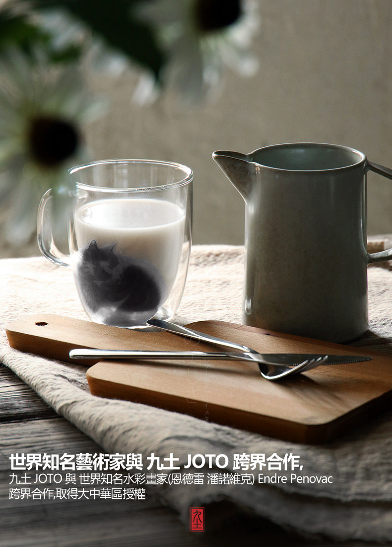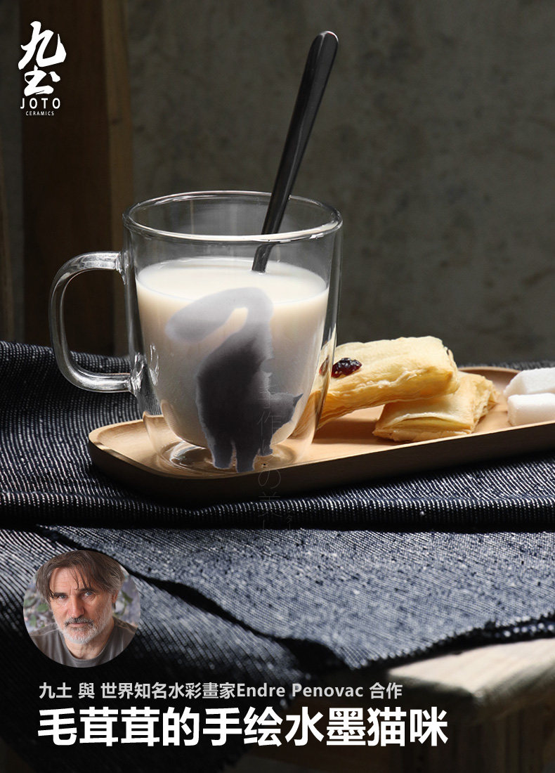 九土 純手工玻璃馬克咖啡杯辦公雙層不燙手隔熱貓咪藝術(shù)新品