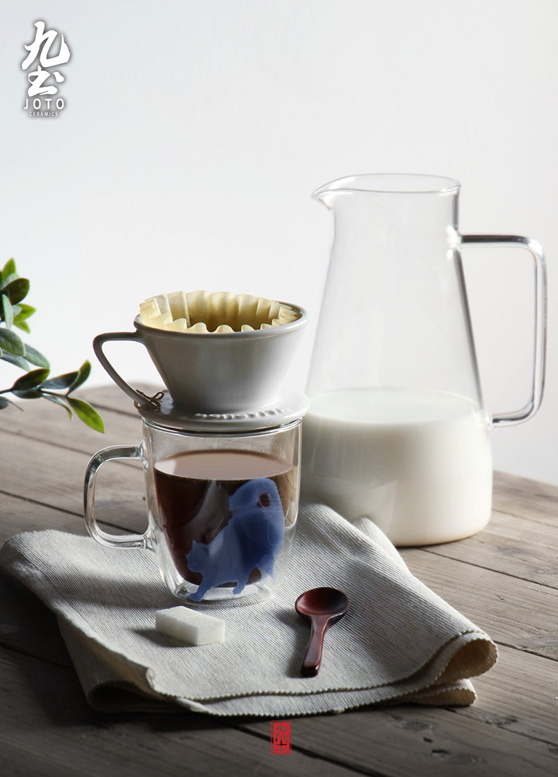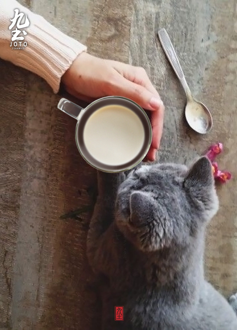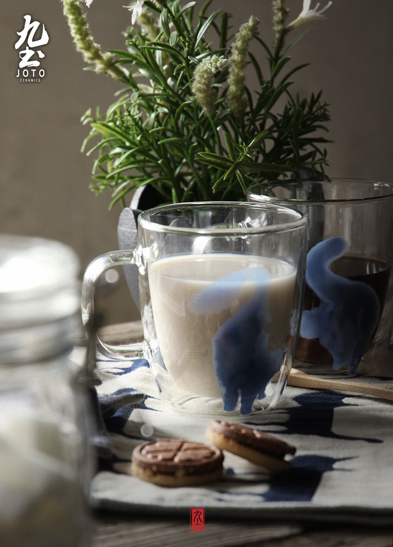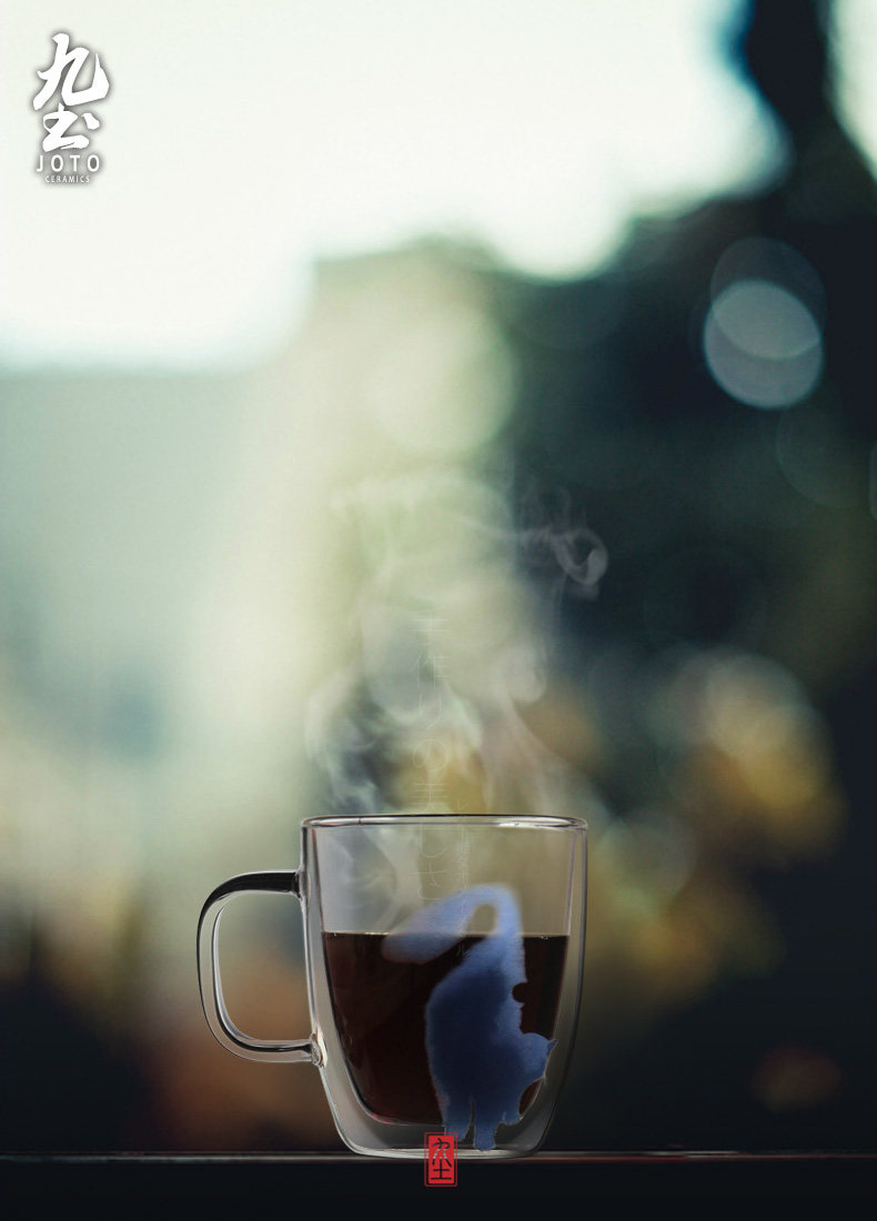 九土 純手工玻璃馬克咖啡杯辦公雙層不燙手隔熱貓咪藝術(shù)新品