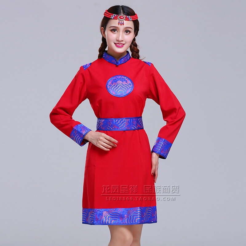 。女士蒙古袍民族風(fēng)連衣裙蒙古族日常生活裝女蒙餐酒店員價格行情