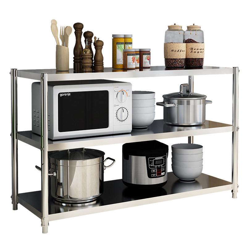 廚房置物架落地微波爐架多功能3層架子收納整理架家用貨架不銹鋼價(jià)格行情