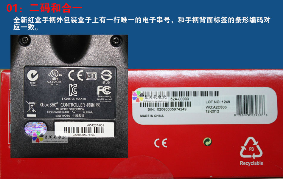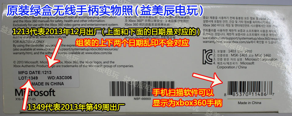 第四、原裝的SN碼是可以在條形碼機(jī)器上掃描出來的SN碼與手柄上的碼一致(速遞員的掃描一可以掃超市的里也可以)大家在收貨時(shí)可以借用速遞員的掃描器試試看是否對(duì)碼