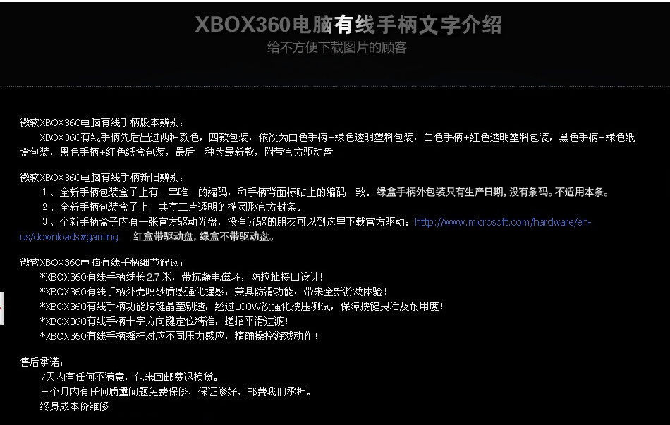 本店還有xbox360有線原裝手柄,需要的朋友可以客服。