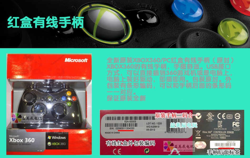 原裝xbox360有線手柄紅盒原封:促銷價(jià)(咨詢特價(jià)) pc版