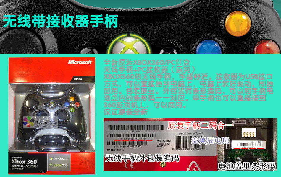 原裝xbox360無線手柄+pc接受器紅盒原封:促銷價(jià) (咨詢特價(jià)) 適用pc和360游戲機(jī)