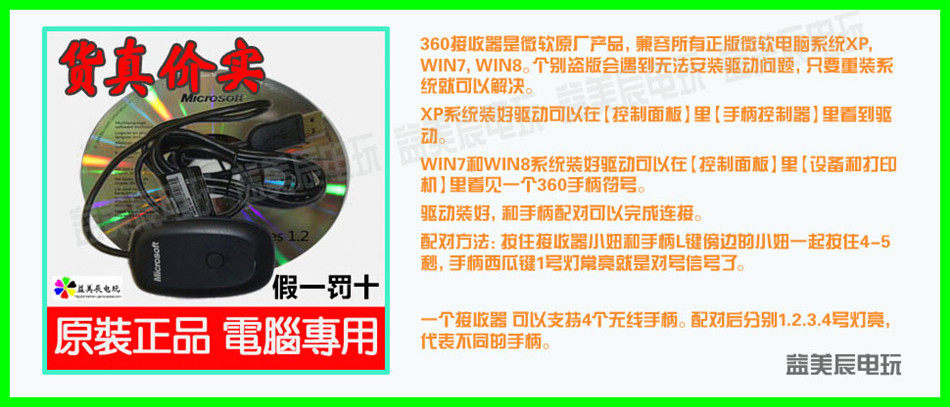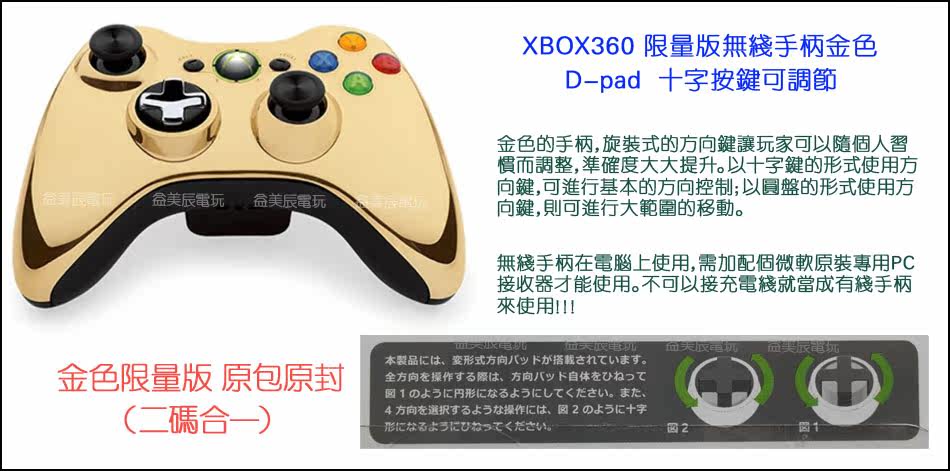 原裝金色限量版原封【盒裝】手柄+原裝接收器(散裝)促銷價(jià) (咨詢特價(jià)) 適用pc和360游戲機(jī)