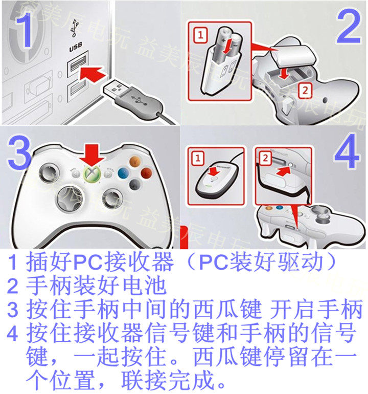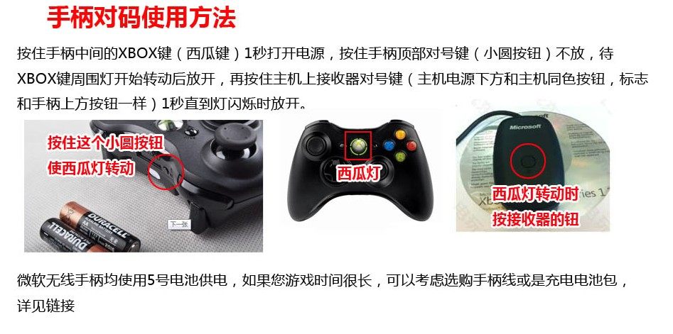 無線手柄和360主機(jī)配對(duì)方法: